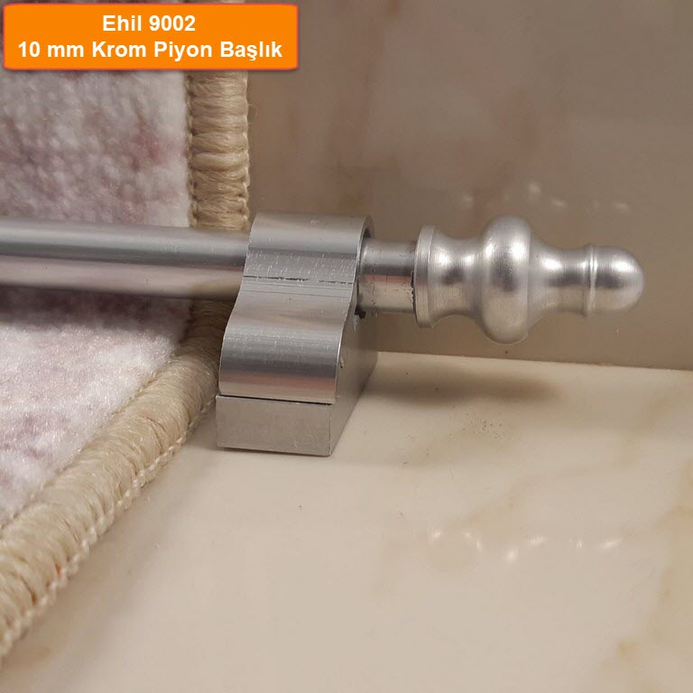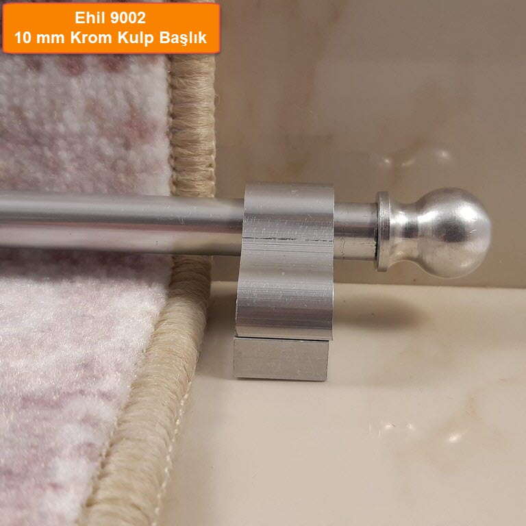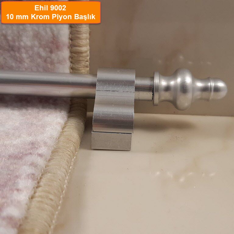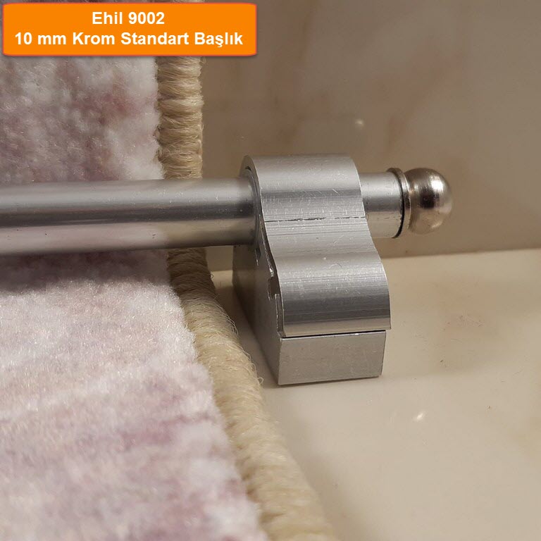 | Ehil 9002 10 mm Dekoratif yüksek kalite alüminyum malzemeden üretilmiştir.Standart olarak krom ve gold renklerinde üretilmektedir.İstenilmesi ve yeterli satış miktarına ulaşılması halinde,bronz ve özel renklerde üretim yapılabilmektedir.Krom ve gold dışında diğer renklerde kaplama fiyat farkıyla yapılmaktadır. Daha dolgun ve gösterişli görünüm elde etmek isteyen müşterilerimiz için tasarlanan kulp ve piyon başlıklarla sipariş geçilebilmektedir.Yazılı olan fiyatlar standart başlıklar için geçerlidir. Kulp ve piyon başlıklar fiyat farkıyla gönderilmektedir. Halı hav yüksekliğine göre çubuk kalınlığının seçilmesi çubuğun daha iyi tutuş yapmasını sağlamakta etkili olur.Halı dip çıtası ve halı dip demiri gibi isimler altında satılmakta olan halı merdiven çubuğunu alırken dikkat edilmesi gerekenler. Ürünün alüminyum veya pirinç malzemeden üretilmiş olmasıdır.Demir çubuklar paslanmaya ve oksitlenmeye karşı dirençli değildir.İç ve dış kullanımlarda tutturduğunuz (Halı,Kıvırcık,Pvc Paspas ) gibi malzemeye kalıcı olarak zarar vermesi kaçınılmazdır. Kolay montaj ve montaj sonrası temizlik için kolay söküm yapılabilmektedir. Teknolojisi Halı çubuğu koleksiyonuna ait tüm modeller,son teknoloji ile donatılmış fabrikalarımızda üretilmektedir. Yapısı Eloksal kaplama alüminyum malzeme veya sarı pirinç malzeme. E-Satış Koşulları Ürünler belirlediğiniz başlıklarla birlikte takım olarak montaj elemanlarıyla gönderilmektedir. 1 mt ile 0,70 cm arası ölçüler 1 mt olarak hesaplanır.Kesilen çubuklar iade alınmaz. Ürünlerin sevk edilmesi talepleriniz doğrultusunda,ambar veya kargo ile yapılmaktadır.Ürün ödemesi alıcıya aittir Ürün teslimatı 2 ile 3 gün içerisinde yapılmaktadır. Açıklamalar Resim-fotoğraf renkleri ile gerçek ürün renkleri arasında farklılık olması kaçınılmazdır. Kullanım Alanları Konutlar-Oteller-Ofisler-Okullar-Yurtlar-Residenceler-Restaurantlar-Hastaneler-İşyerleri-Kreşler. Daha Kapsamlı bilgi almak için bize ulaşabilirsiniz. Teknik Özellikler